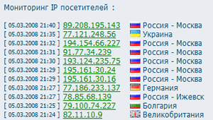 При нажатии мышью на количество хостов или посетителей из поисковых систем (числа на зеленом фоне) вы получите доступ к мониторингу: